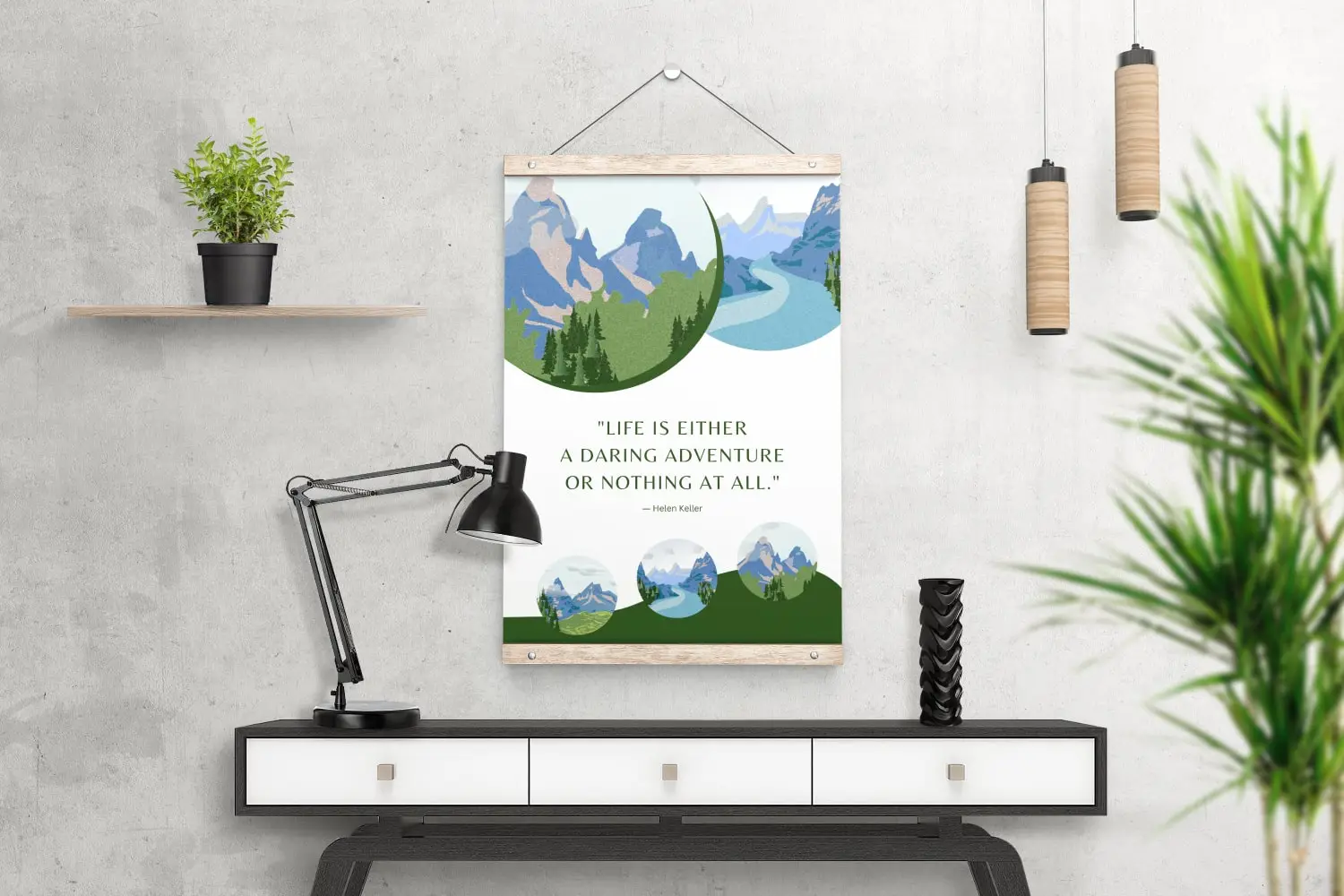 - Hooks are attached to the back of each frame for hanging.
